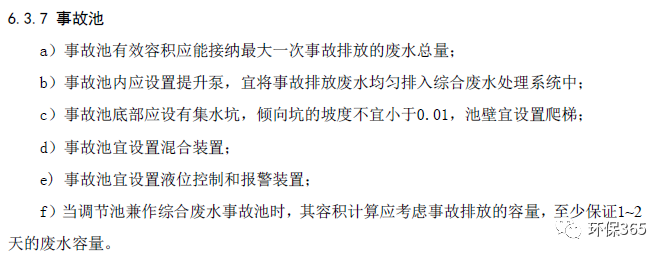附:各行業(yè)廢水治理(處理)技術規(guī)范中對事故應急池的相關要求匯總
