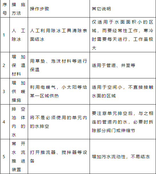 2、凡是存留有水分的污水和污泥管線、設備均需考慮防凍,防凍的措施包括加保溫、伴熱、保持介質(zhì)連續(xù)流動,使停用的管線、設備中不得存留含水介質(zhì)。
