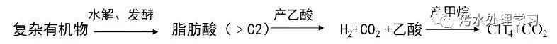 ②發(fā)酵酸化階段——包括 氨基酸和糖類(lèi)的厭氧氧化,以及較高級(jí)脂肪酸與醇類(lèi)的厭氧氧化。